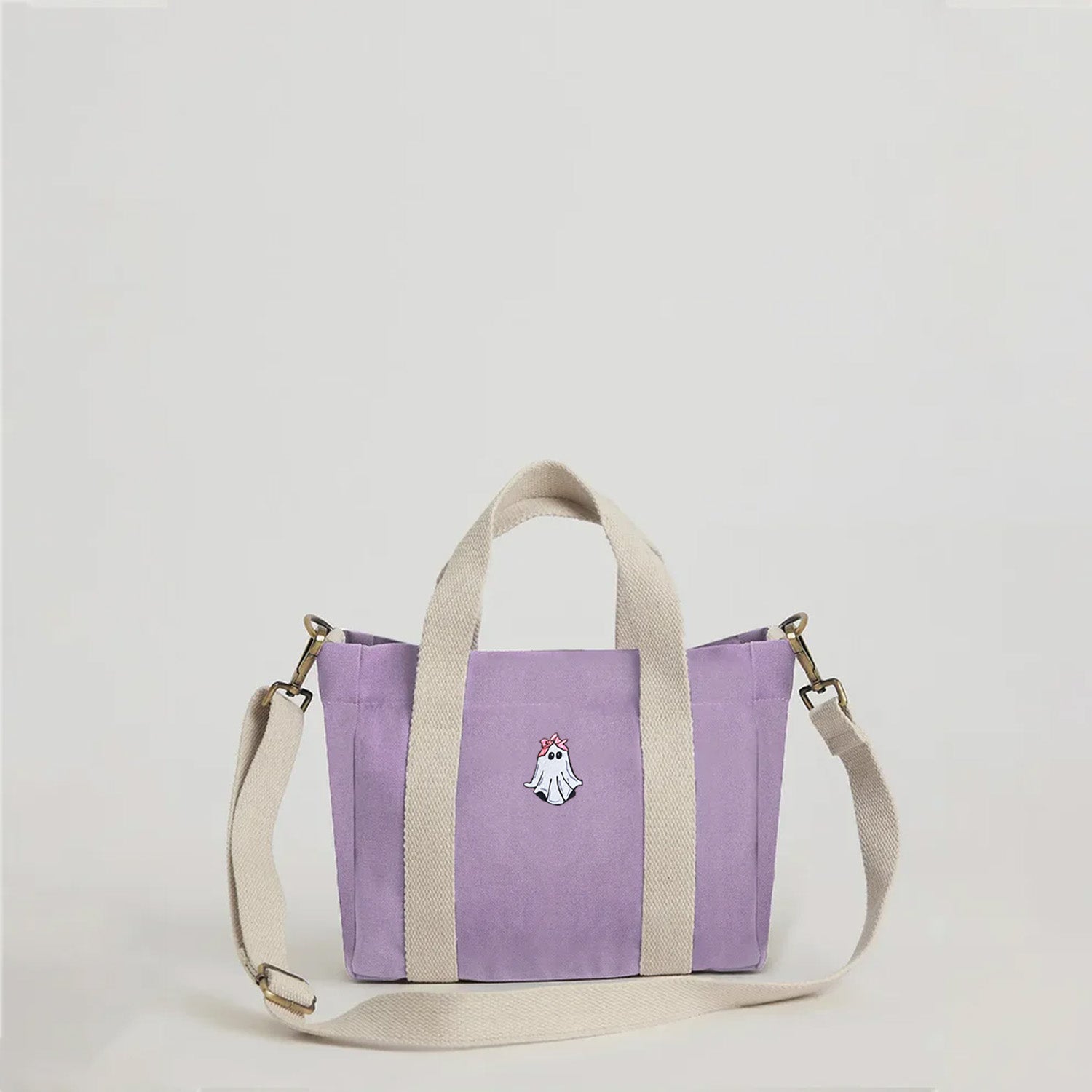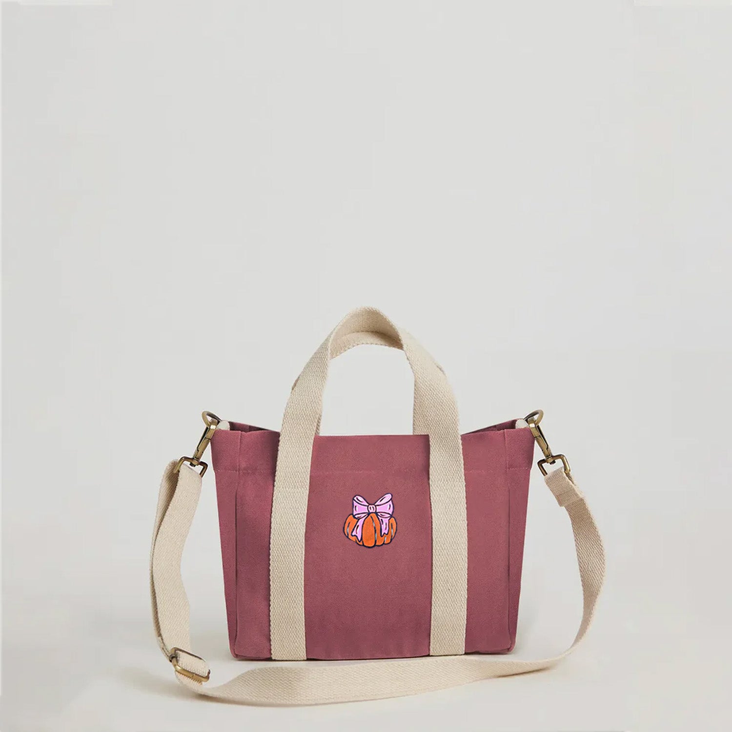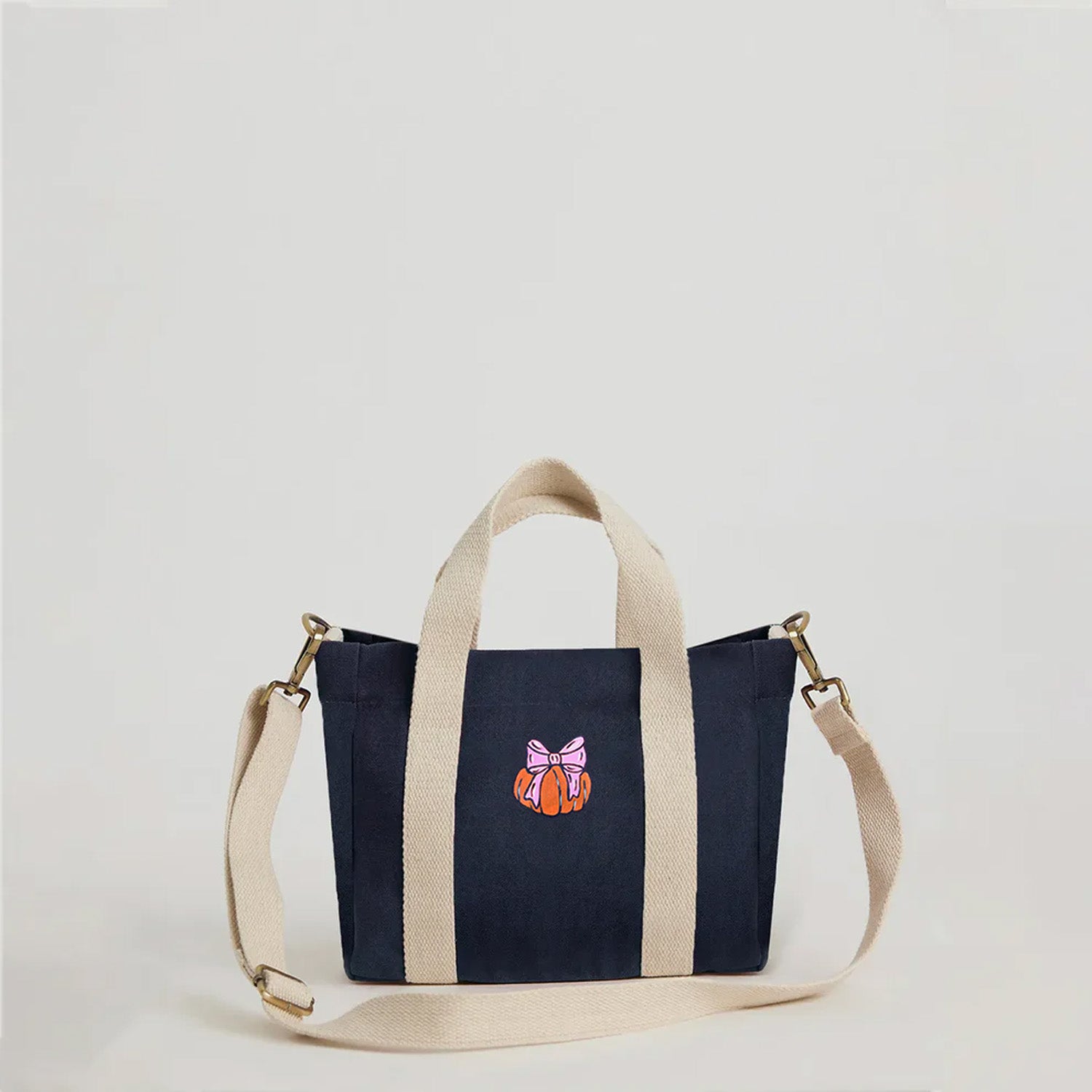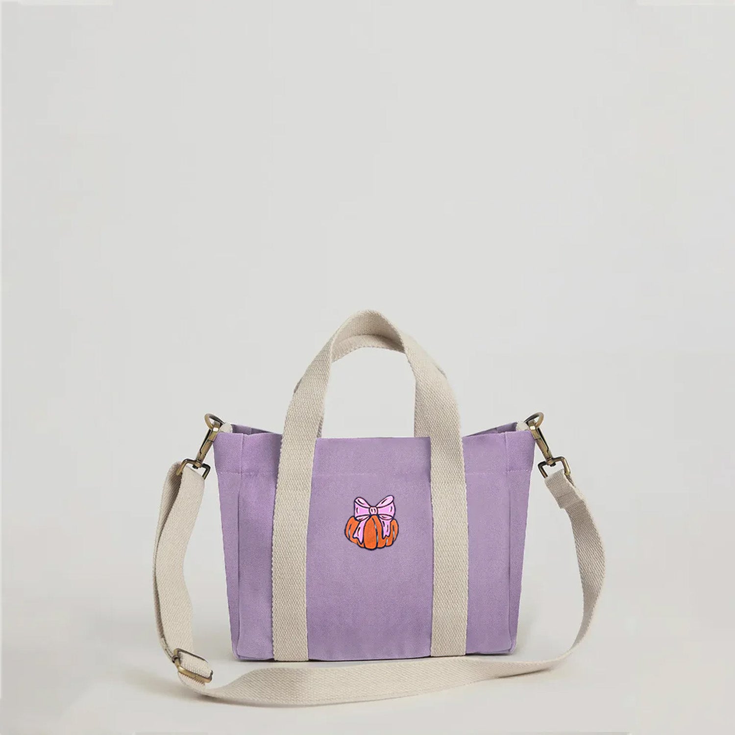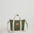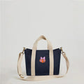 - Material: Pure cotton canvas body with printed cotton lining; expandable and detachable crossbody strap made of braided cotton yarn.